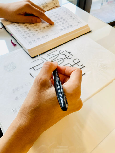 作成する印面のデザインの下書きをします。辞林や辞書、サンプルからレイアウトを検討します。